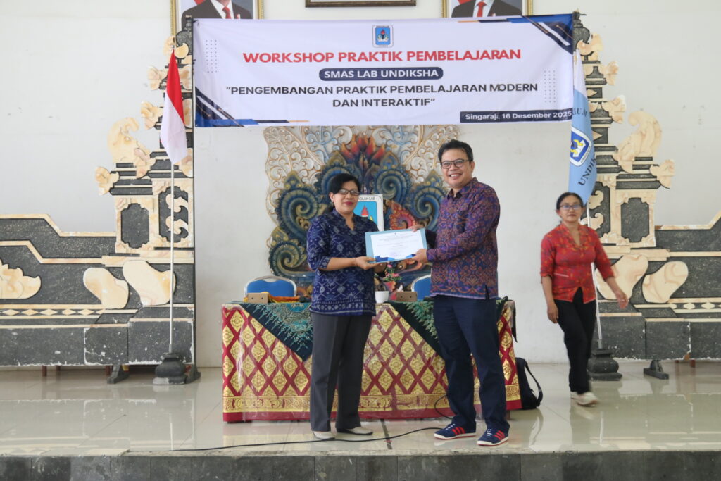 Singaraja, 16/12/2025, SMAS Lab Undiksha menyelenggarakan Workshop Praktik Pembelajaran dengan tema “Pengembangan Praktik Pembelajaran Modern dan Interaktif” pada Selasa, 16 Desember 2025. Kegiatan ini berlangsung di Gedung Auditorium SMAS Lab Undiksha dan diikuti oleh para guru, pegawai, serta mahasiswa Asistensi Mengajar Universitas Pendidikan Ganesha (Undiksha) dengan antusiasme yang tinggi.