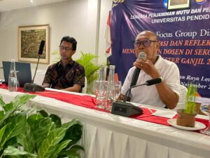 FGD menghadirkan dua narasumber utama. Narasumber pertama, Ida Bagus Gde Surya Bharata, S.Pd., M.A.P, Kepala Dinas Pendidikan, Pemuda, dan Olahraga Kabupaten Buleleng, membawakan materi “Penerapan Pembelajaran Mendalam di Kabupaten Buleleng”, yang menyoroti strategi inovatif pemerintah daerah dalam membangun pembelajaran bermakna serta kolaborasi dengan perguruan tinggi.