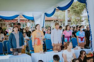 Direktur Sekolah Lab Undiksha, Dr. Luh Putu Putrini Mahadewi, S.Pd., M.Pd., menyampaikan bahwa kegiatan ini merupakan momentum penting dalam menumbuhkan kecintaan terhadap budaya lokal sekaligus memperkuat kolaborasi antara sekolah, siswa, dan orang tua.